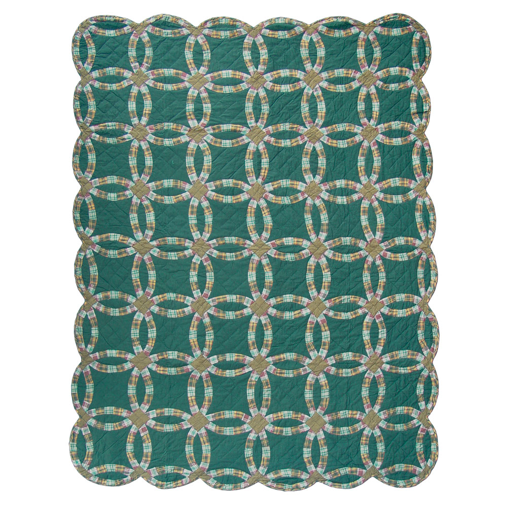 - Green Double Wedding Ring Twin Quilt 65"W x 85"L