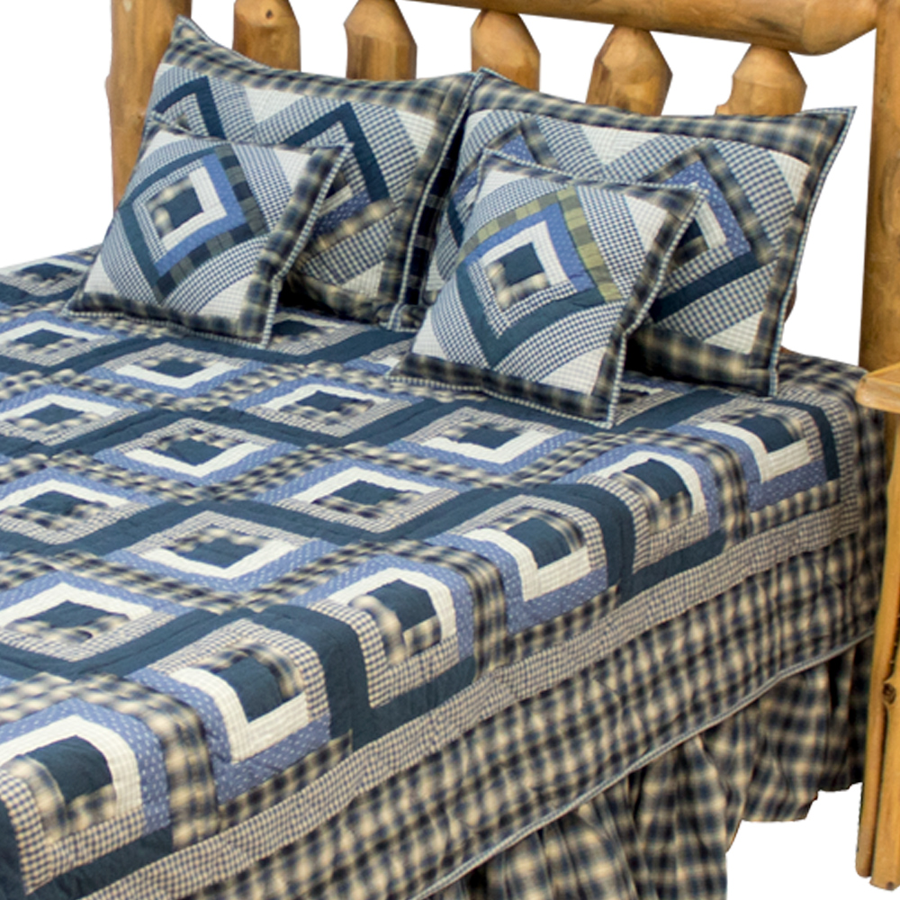 - Blue Log Cabin Super King Quilt 110"W x 96"L