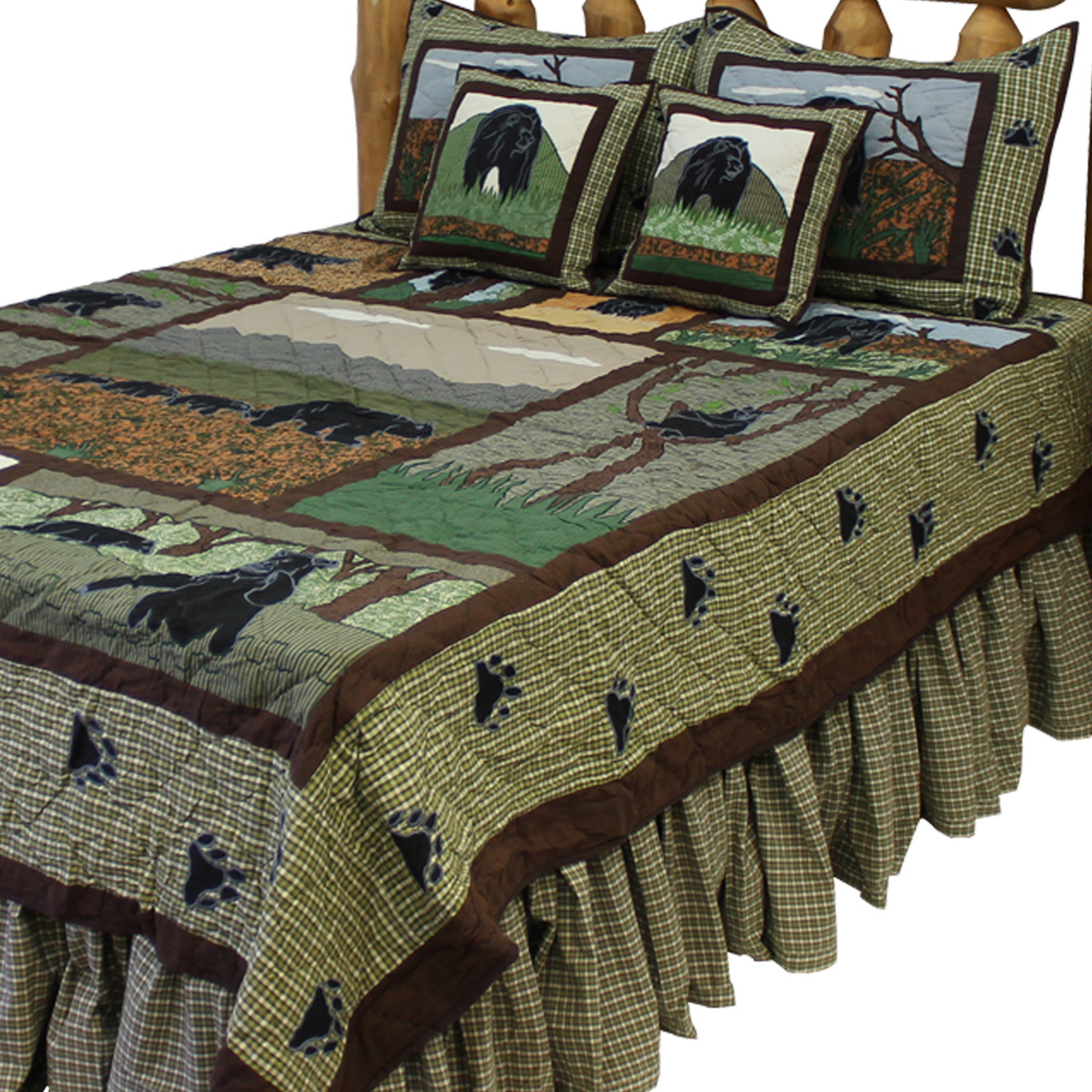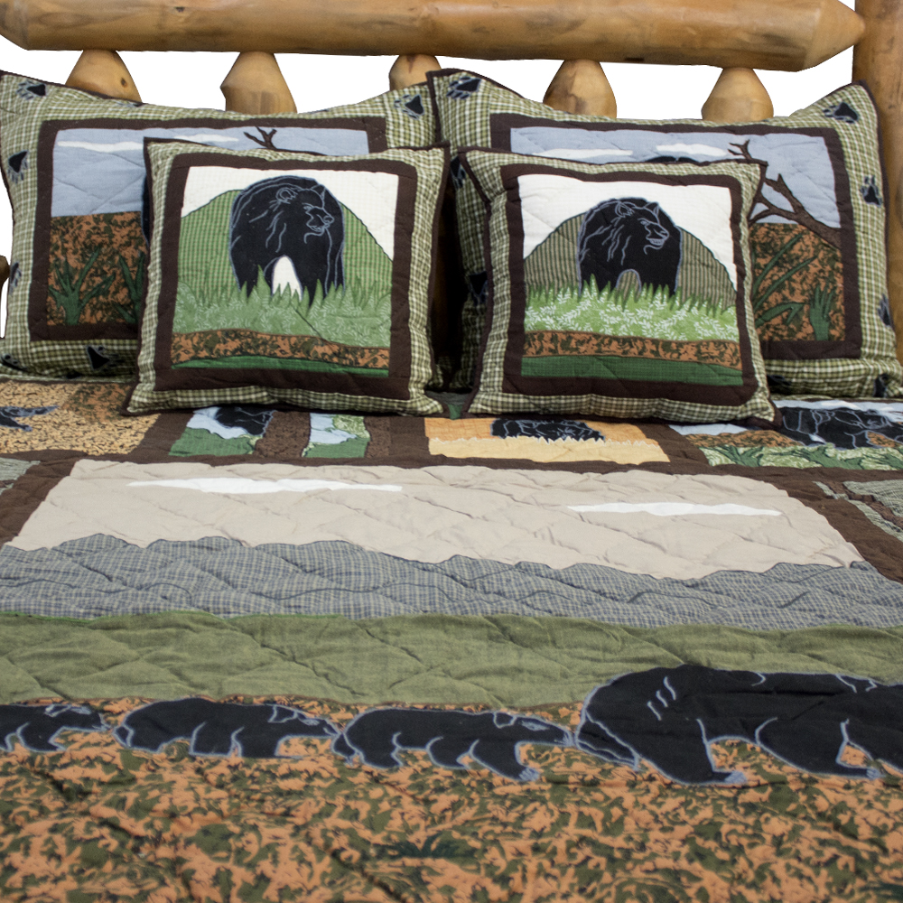 This handmade fabric will attract your attention to see the bear cubs which follows the mother bear in the orange coloured flower field. The footprints of the bears’ paws around the border of the bed spread and the Quilt pillows are other added attractions. This is centre of attraction covering the centre of the bed spread, which is 100% cotton shell and hand layered organic cotton fill Hand quilted and hand layered for unique soft touch and warmth which will surely hibernate you.