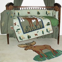 The image in this crib set aligns the majestic moose standing between the green weeds, with authentic earth tone plaid oak leaves and aspen trees. This unique environment and coordinates will transition your home to this outdoor setting. Colors on your screen may not be an exact match. Please ask for swatches when you are in doubt.