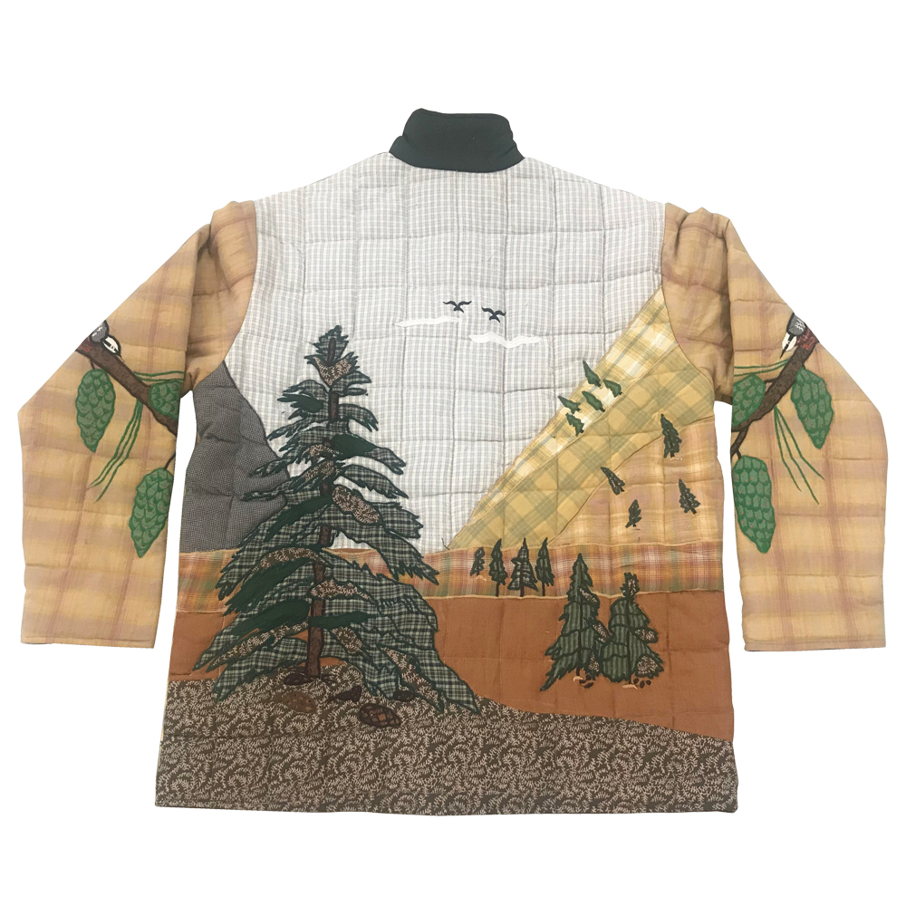 We have gathered the natural beauty of pine out doors with owls, birds, pine trees, and cones in natural earth tones. 100% cotton shell and hand layered organic cotton fill. Hand quilted and hand layered for unique soft touch and warmth.