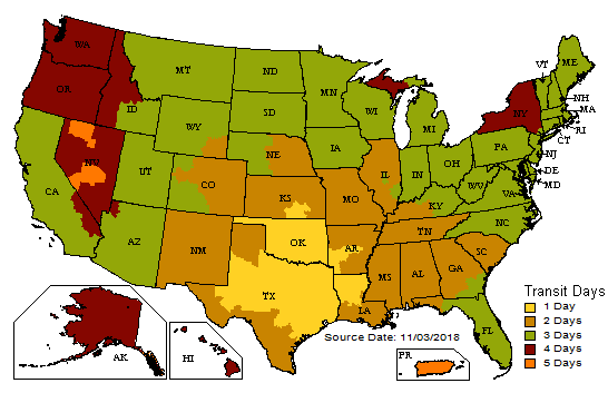 Subject to the Tariff/Terms and Conditions of Service, UPS guarantees on-schedule delivery of packages, shipped via UPS's services, that are listed as guaranteed, or will refund your transportation charges. Guaranteed Service is not available in all areas and does not apply to shipments containing a package with an Additional Handling or Large Package surcharge. Scheduled business days and delivery schedules are revised occasionally due to changes in distribution and volume, especially during holiday periods. Service to some remote areas also may require additional delivery days. For current delivery schedules, service availability and information, and a description of the UPS service Guarantee, see the UPS Rate and Service Guide. The most up-to-date transit time details will be available at ups.com/ctc at the time of shipping. Certain commodities and high value shipments may require additional transit time for customs clearance.