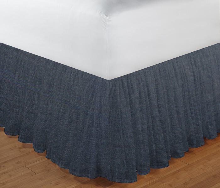 - Dark Blue Denim Chambray Bed Skirt Twin Size 39"W x 76"L-Drop-18"