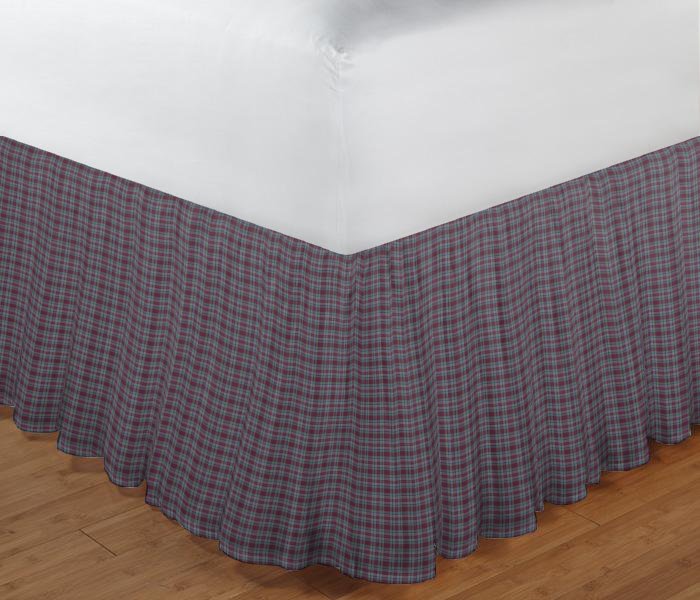 - Burgundy Plaid Bed Skirt Queen Size 60"W x 80"L-Drop-18"